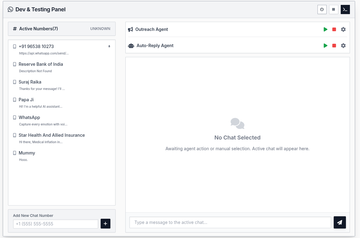 - Outreach Mode – send messages to specific numbers at a deliberately slow, human-like pace to reduce blocking risk.